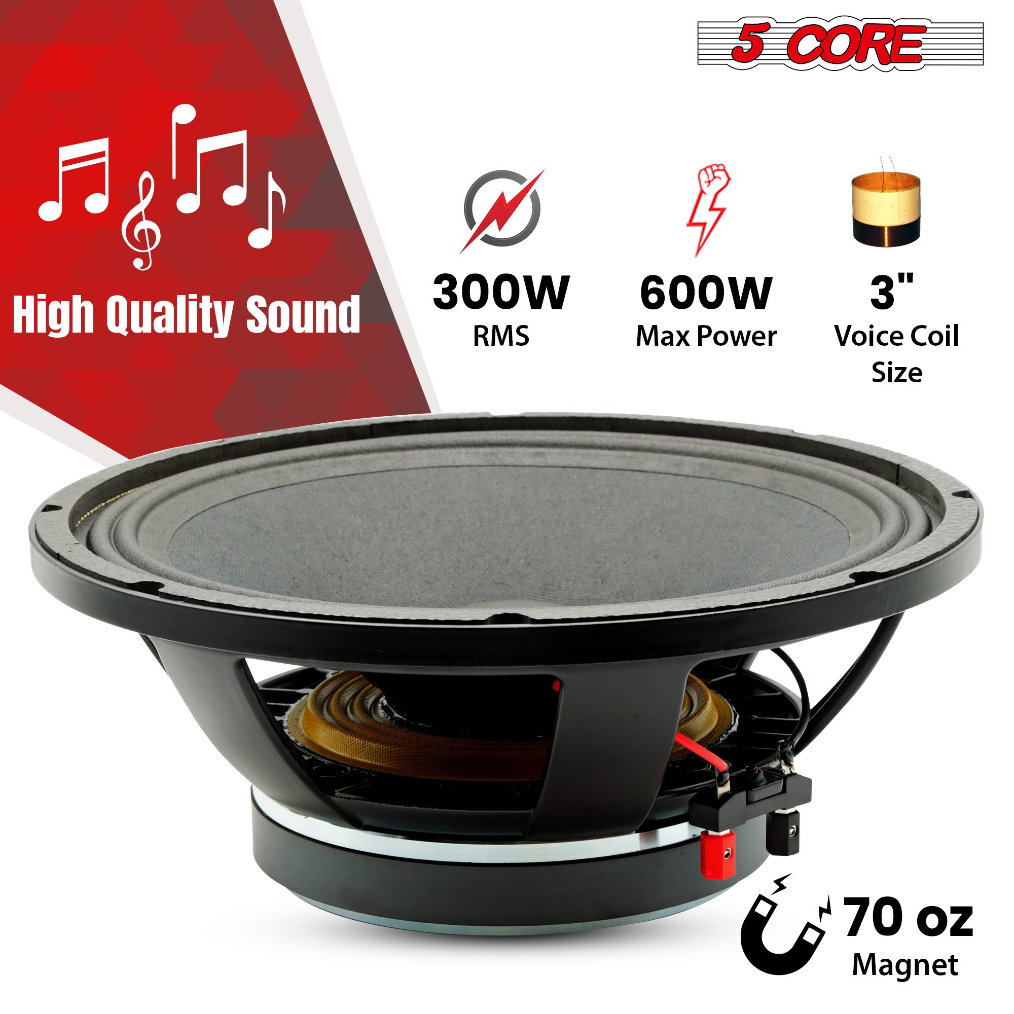 5 Core 12 Inch Subwoofer Speaker 600W Max 8 Ohm Full Range Replacement DJ Bass Sub Woofer - FR 12 185 AL