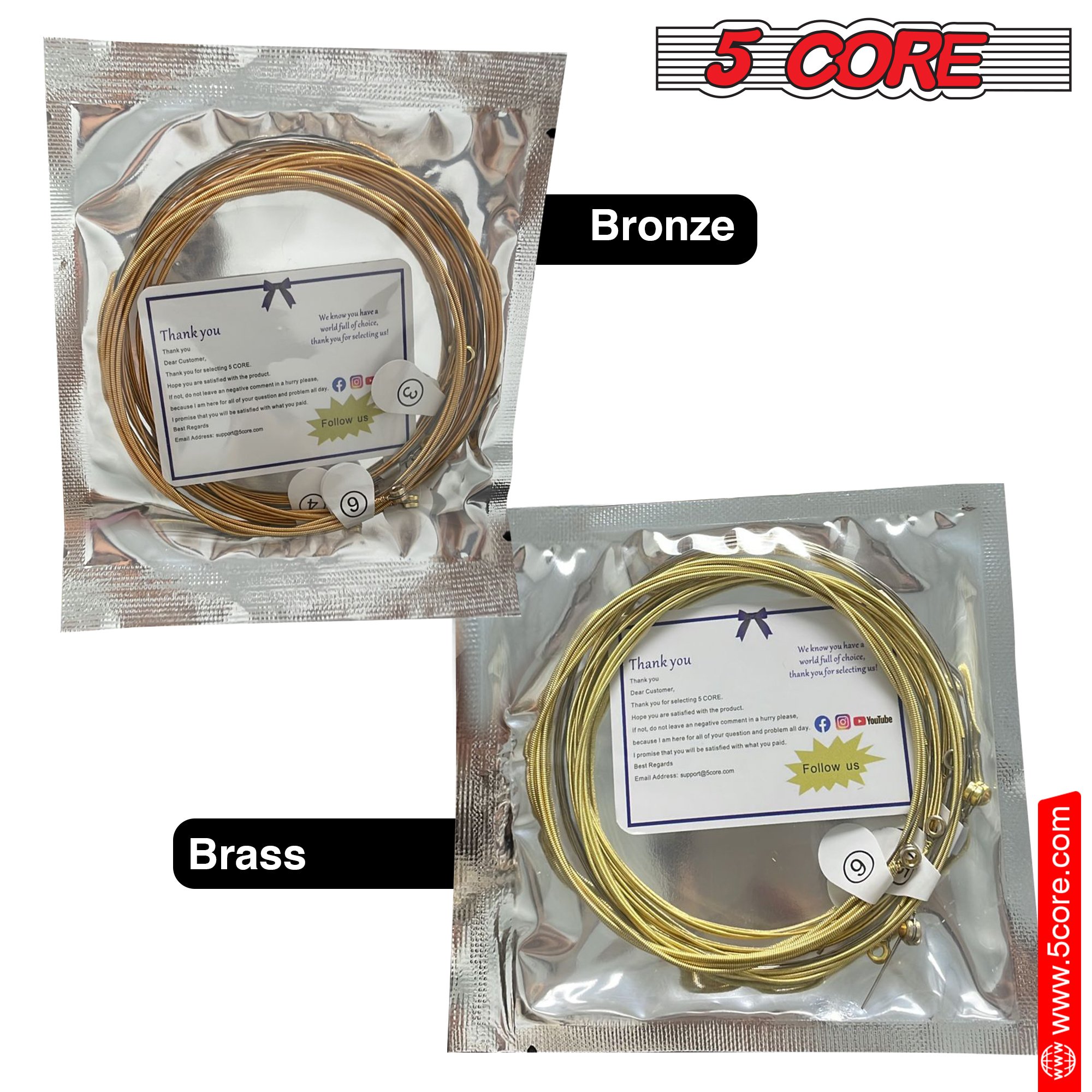 Corrosion-resistant, precision wound:5 Core Phosphor Bronze acoustic guitar strings feature corrosion-resistant and precision wound construction, with phosphor bronze wrap wire tightly wrapped around a hexagonal high-carbon steel core.