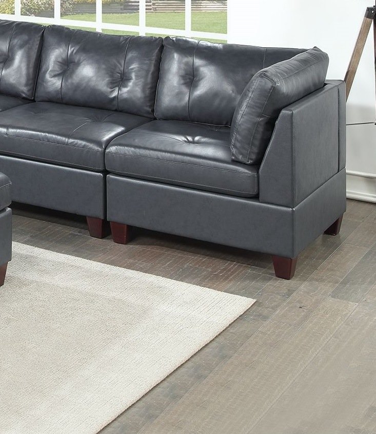 Home > Contemporary Genuine Leather 1pc Corner Wedge Black Color Tufted Seat Living Room Furniture