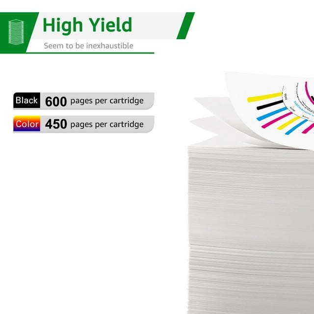 High Yield: 600 pages per black cartridge / 450 pages per color cartridge