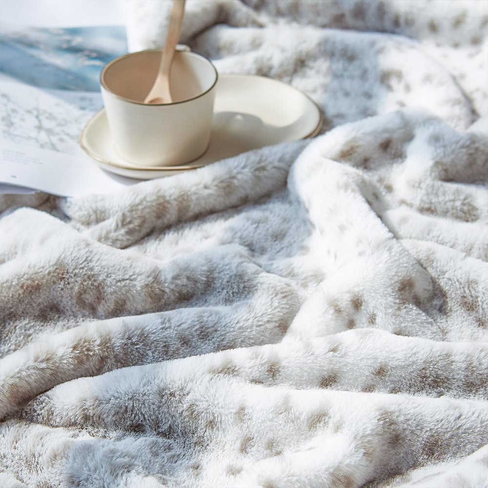 Home > Printed Faux Rabbit Fur Throw, Lightweight Plush Cozy Soft Blanket, 50" x 60", Grey Leopard (2 Pack Set of 2)