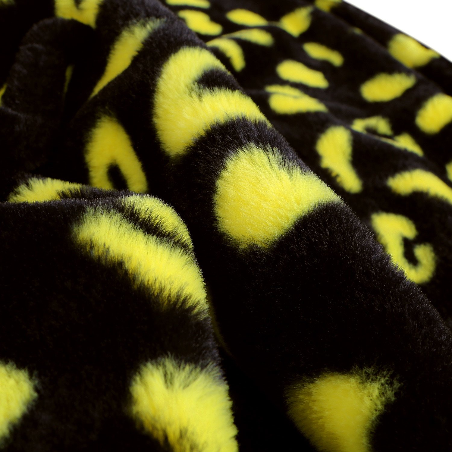 Home > Printed Faux Rabbit Fur Throw, Lightweight Plush Cozy Soft Blanket, 60"x70" Black Leopard
