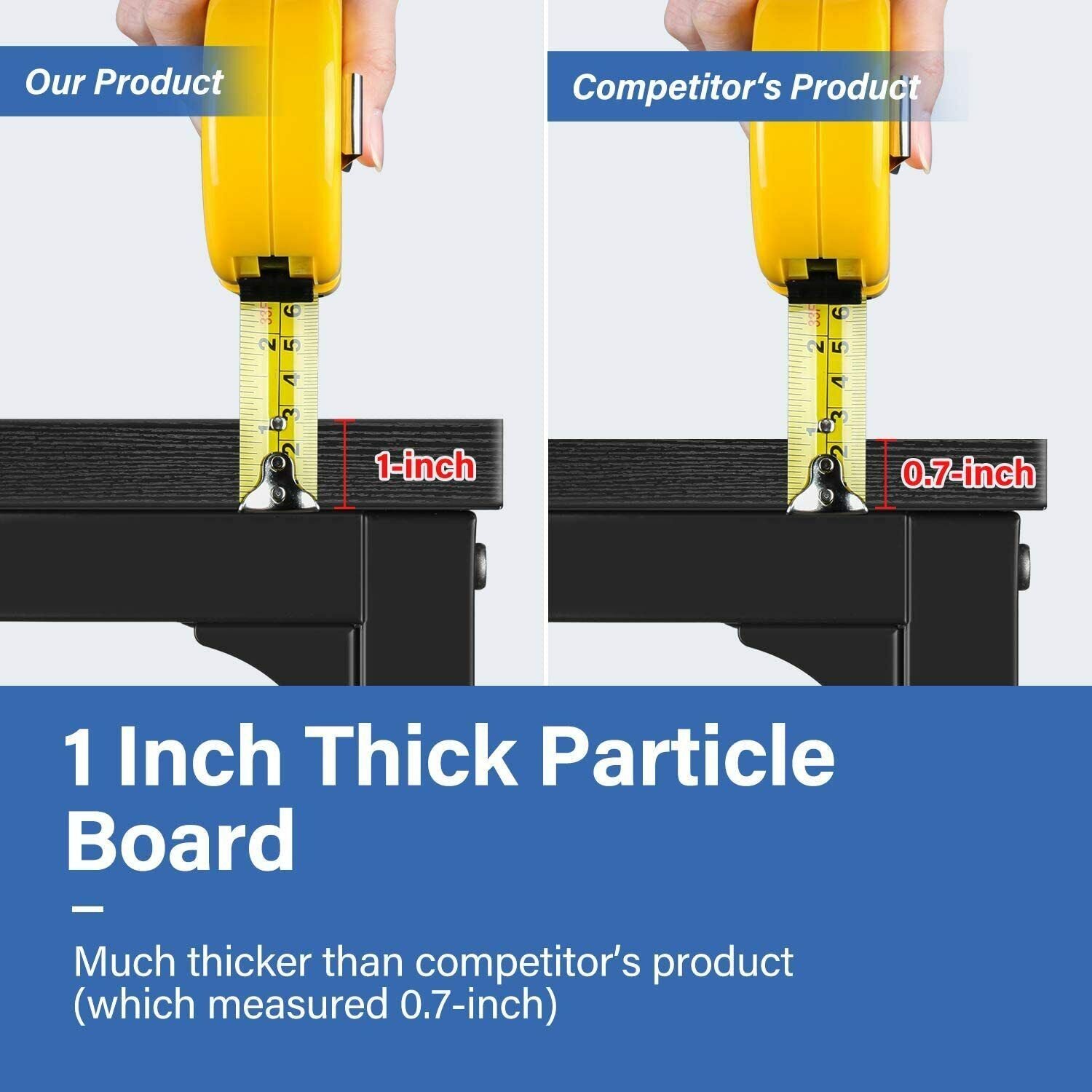 High Quality & Durable: Steel frame, powder coated finish, environmental particle board. The track-legs construction and screw double reinforcement makes the desk very durable.