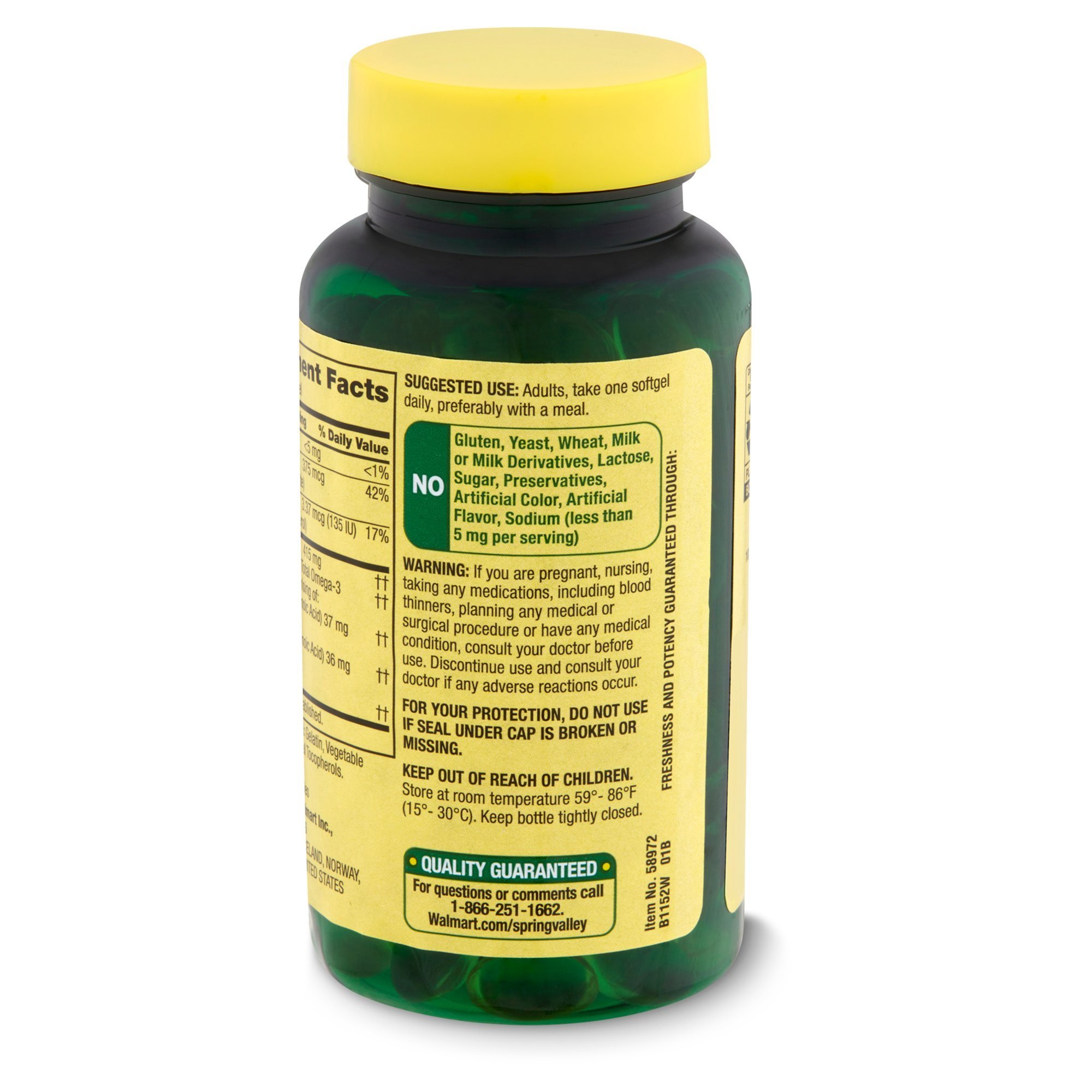 Spring Valley Cod Liver Oil Plus Vitamins A & D3 Dietary Supplement is a supplement that may support immune health. Vitamin A helps support eye function and a healthy immune system and vitamin D3 is important for calcium absorption; which helps support healthy bones. These softgels contain no gluten; yeast; wheat; milk or milk derivatives; lactose; sugar; preservatives; artificial color; or artificial flavor; and less than 5 milligrams of sodium per serving. The recommended dosage is 1 softgel daily; preferably with a meal. You can rest assured our Spring Valley Cod Liver Oil Plus Vitamins A & D3 Dietary Supplement is produced with strict quality guidelines and backed by our quality guarantee.