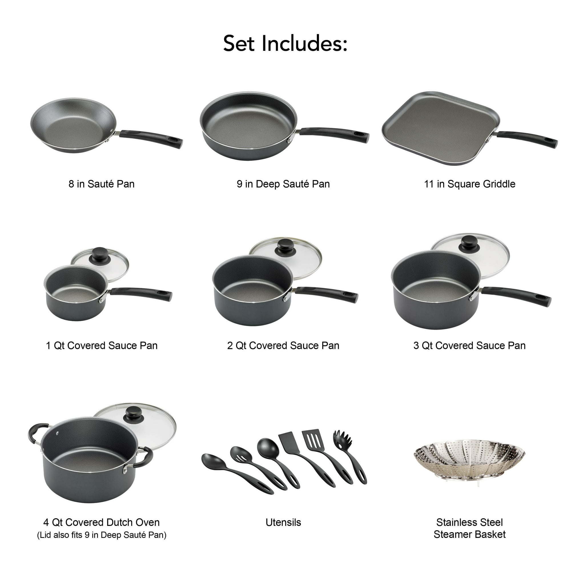 Tramontina Primaware 18 Piece Non-stick Cookware Set, Steel Gray Tramontina Primaware 18 Piece Non-stick Cookware Set, Steel Gray Tramontina Primaware 18 Piece Non-stick Cookware Set, Steel Gray
